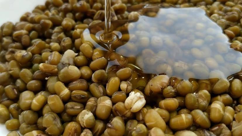 1.首先把100g绿豆提前一个晚上用清水浸泡一个晚上。