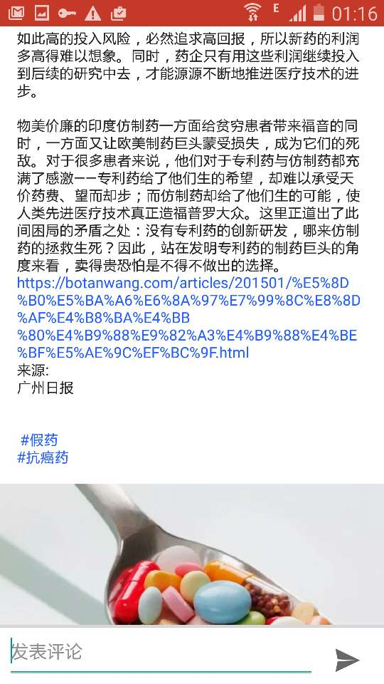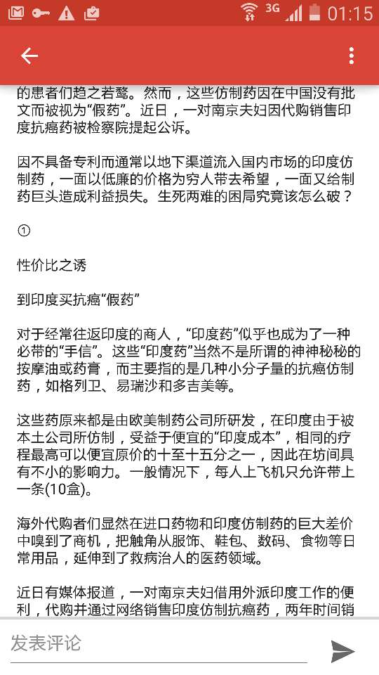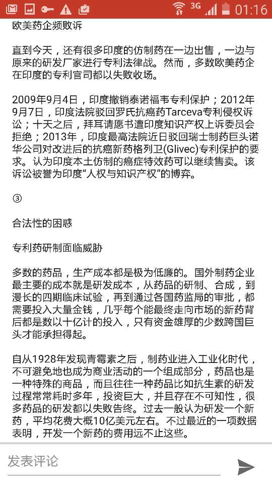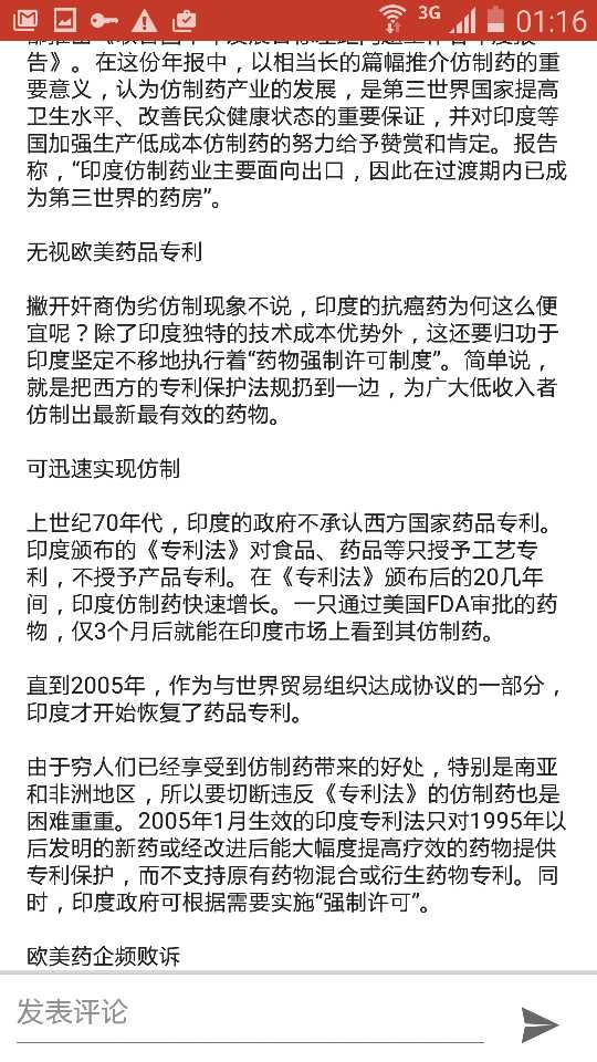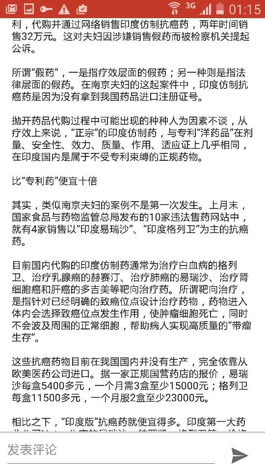 我感谢印度的仿药公司,我妈妈就是吃印版易瑞沙稳定病情的,不然作为普通下岗工人家庭的独生子女,如何承担天价药
