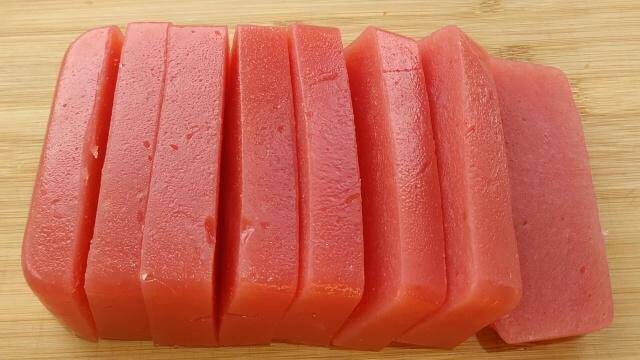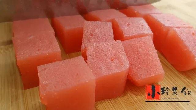 9.表面凝固就可以倒出来了,用刀切出你喜欢的形状。