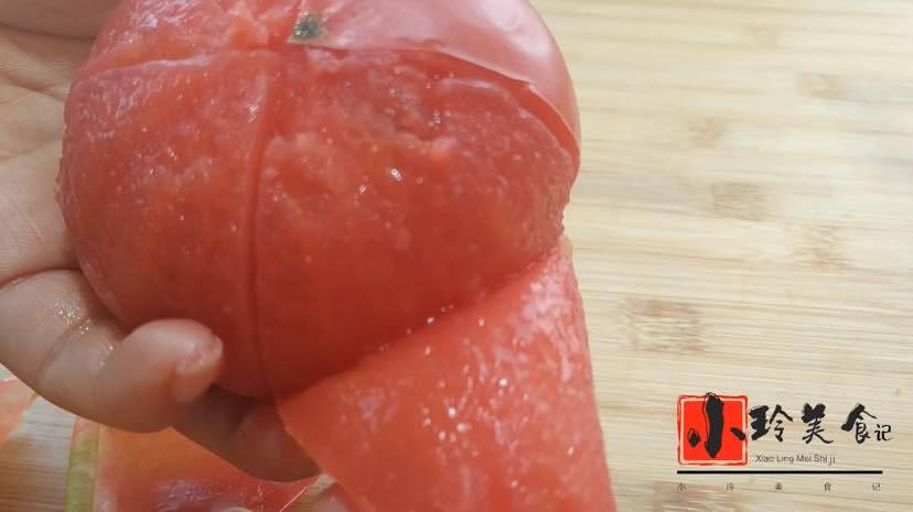 3.把烫好的西红柿捞出来,用手剥去西红柿的皮。