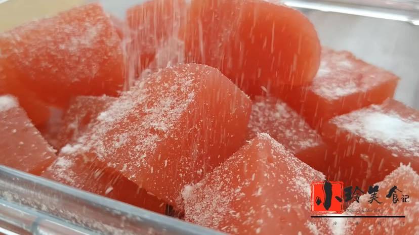 11.裹上椰蓉也非常好吃,西红柿这样做真的非常好吃,特别Q弹,酸酸甜甜的特别开胃又解暑,多做点放到冰箱里冷藏,天热了吃上一块哇凉哇凉的,自己做的好吃又健康,喜欢你也试一下吧!