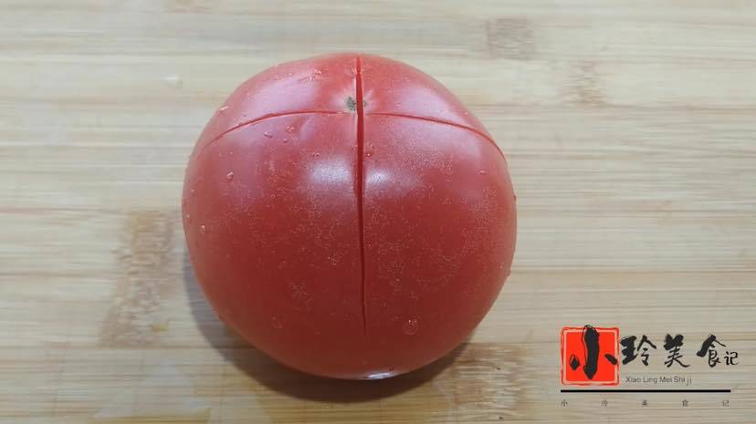 1.首先把买来的西红柿用清水洗干净,把每个西红柿都划上十字花刀。