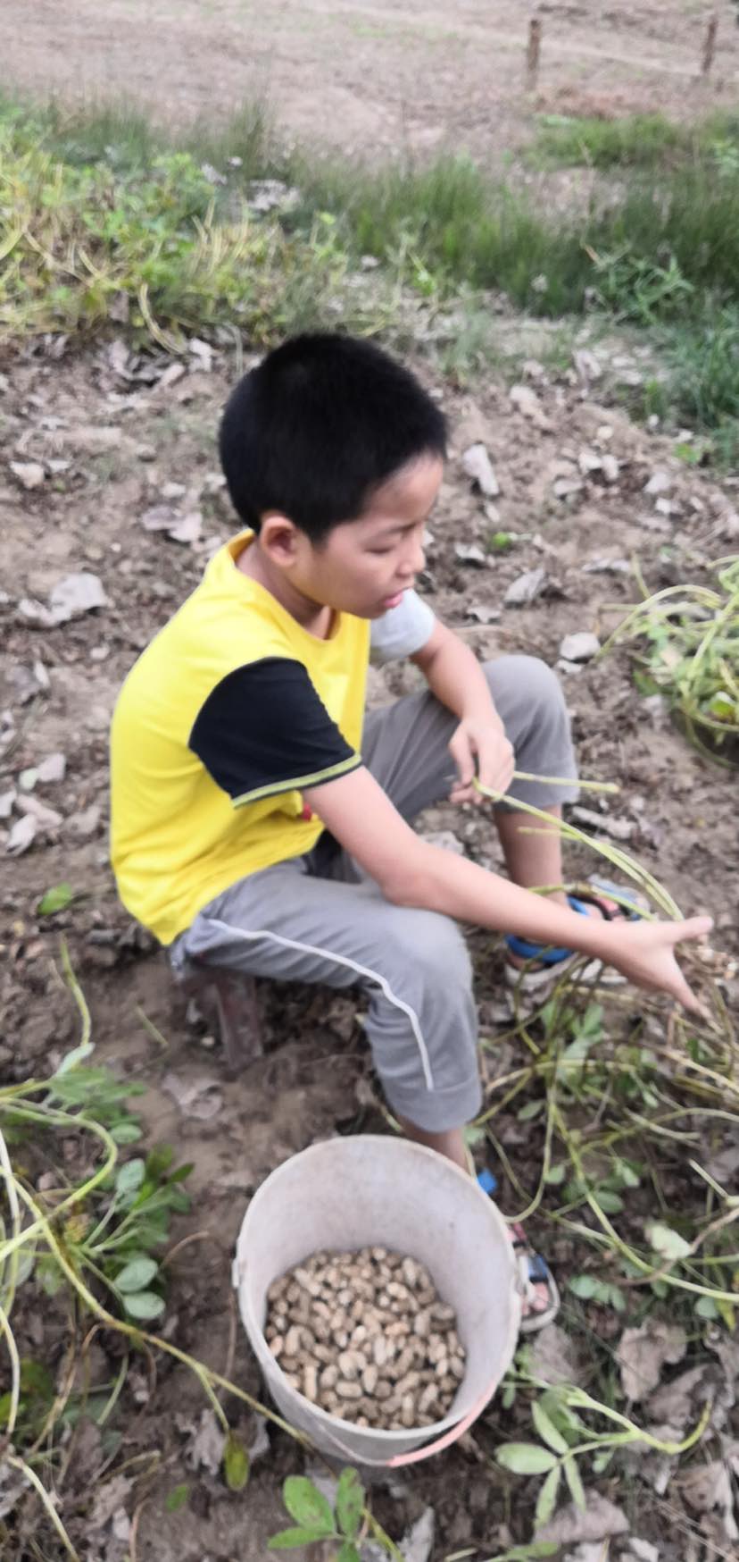三哥儿拔花生的样子真好看