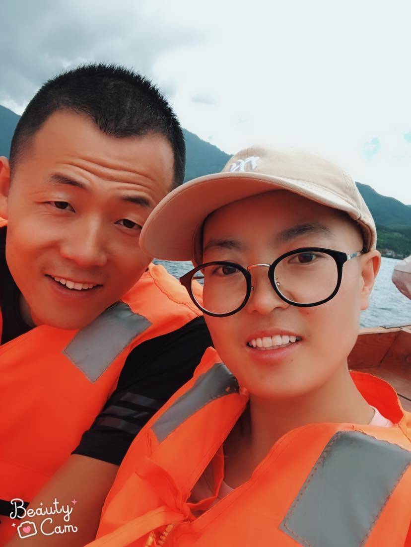 最后附一张和老公游玩时照片,景色很美,导游不美丽。
