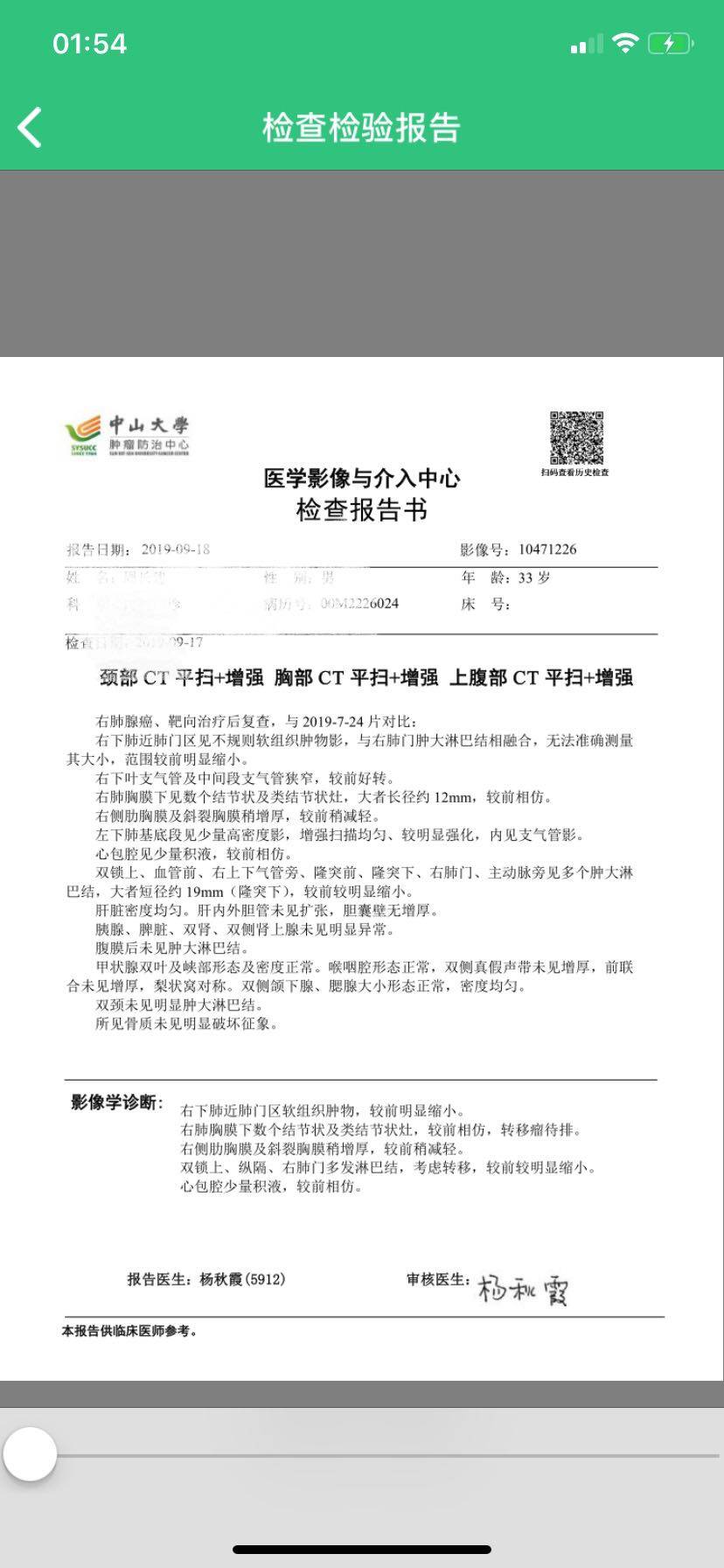 “较前好转”、“较前减轻”、“明显缩小”!33岁的年轻生命在药物支持下,会迸发出强大的自愈能力!