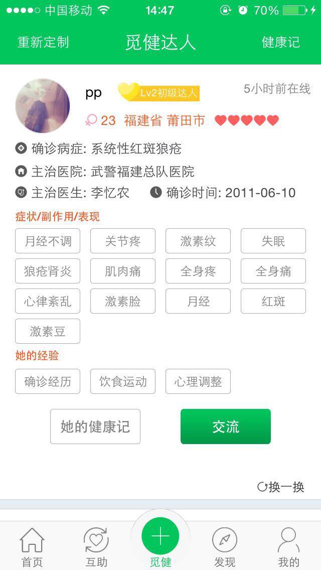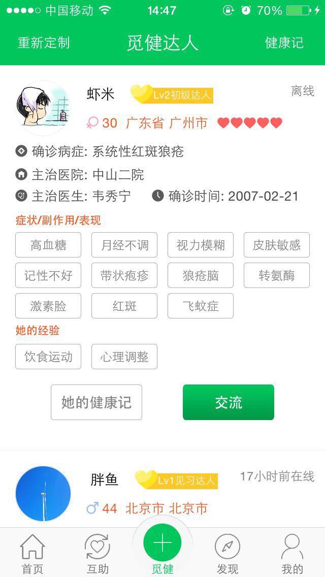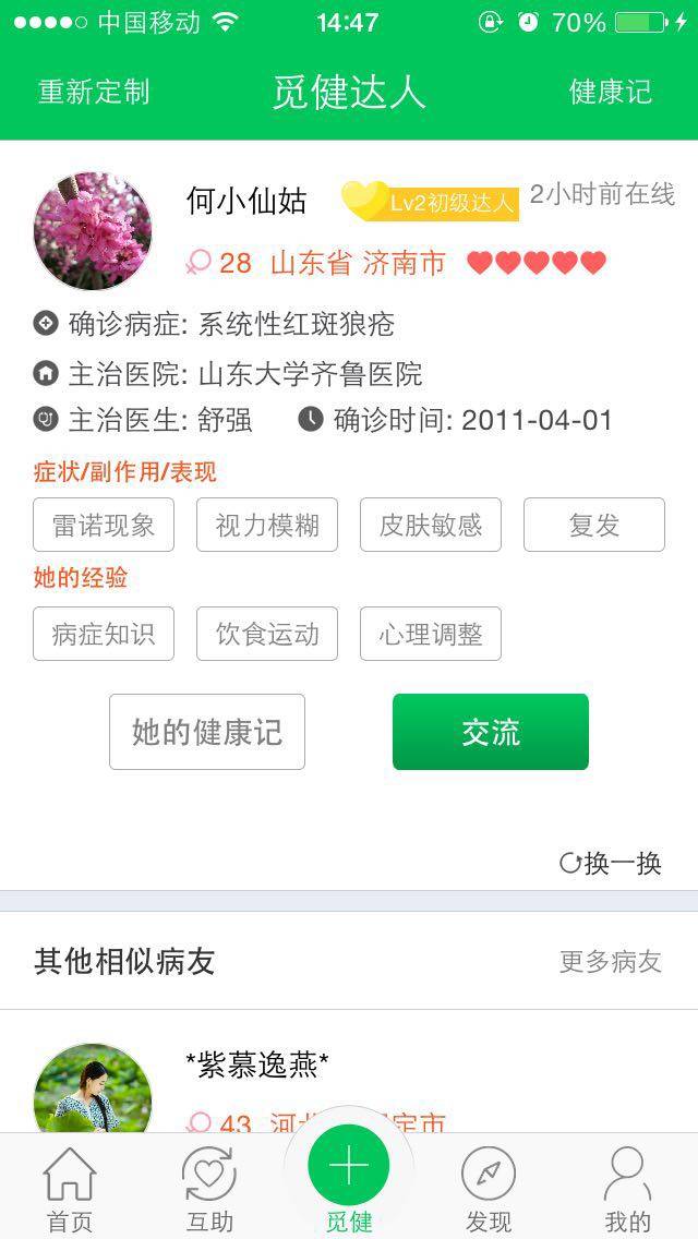 如果你进入的达人页面没有鱼哥,那可能推荐给你的达人是并发症副作用与你比较相近的,如果你还是要找鱼哥,可以点下面一个灰色的小字,“换一换”就可以啦。