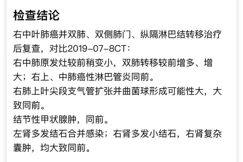 妈妈患肺癌已经有三年了,这三年来一直在接受治疗到现在,下面是妈妈检查以及治疗的过程。2010年10月,妈妈体检出肺癌IV期,纵隔淋巴转移,肝部转移,去省肿瘤医院复查,做了PET-CT,结果一样,省肿瘤