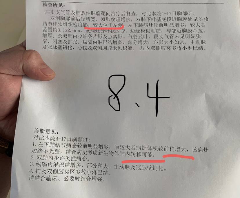 各位病友 请教一下大家 我家刚复查了ct 肿瘤较两个月前大了0.2cm 除了少量积液 其他较两个月前无变化 两个月前的ct显示 (考虑缓慢耐药 当时肿瘤比之前大了0.8cm左右 )医生建议再吃一两个月看看 两个月过去了 肿瘤长大不明显 但是比较疑惑的是 现在究竟该继续吃易瑞沙还是准备基因检测 看有无换9291的机会 家属最近几天比较咳 🙏🙏🙏
