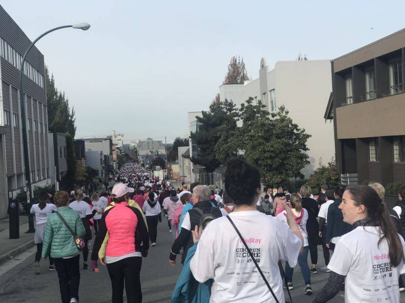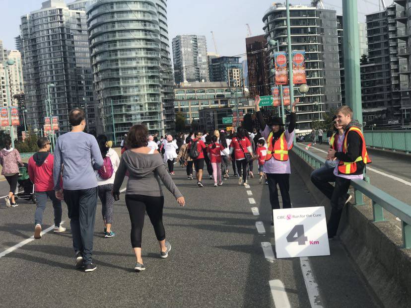 今天是加拿大帝国银行组织的为治愈乳癌而奔跑的筹款活动。 自从1992年开始,这个活动已经筹集了445百万多元加币为乳癌研究基金。 20几年过去了,乳癌防治有了重大突破。现在的治疗方法很多,我们都是乳癌研究的受益者。