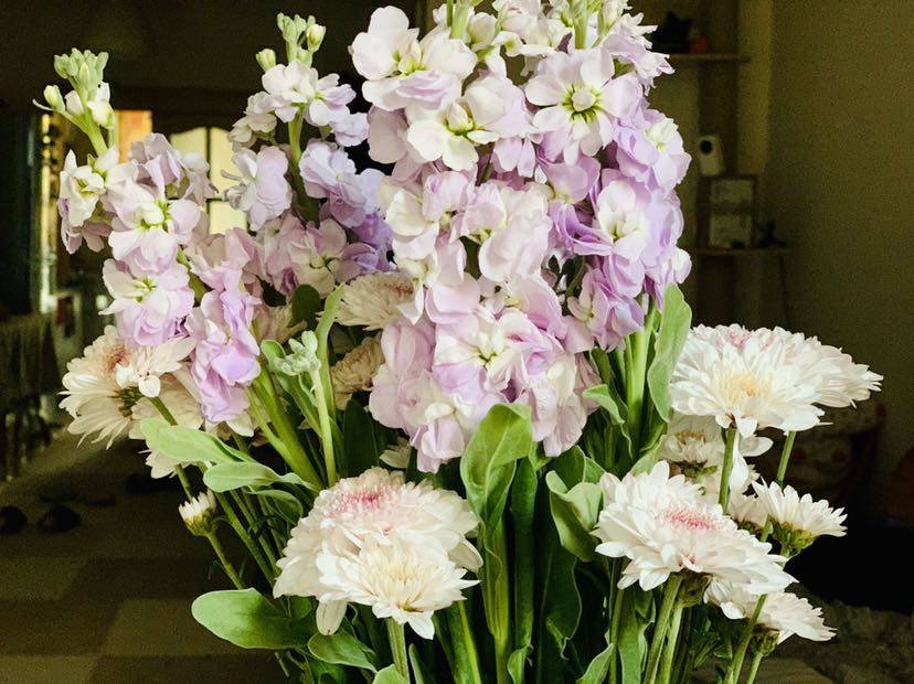 还买了些花,也放一下吧。