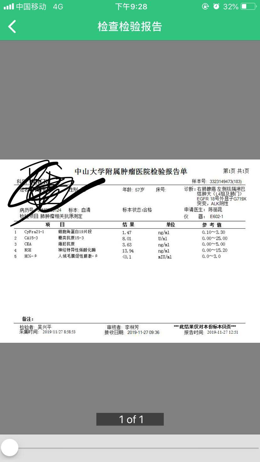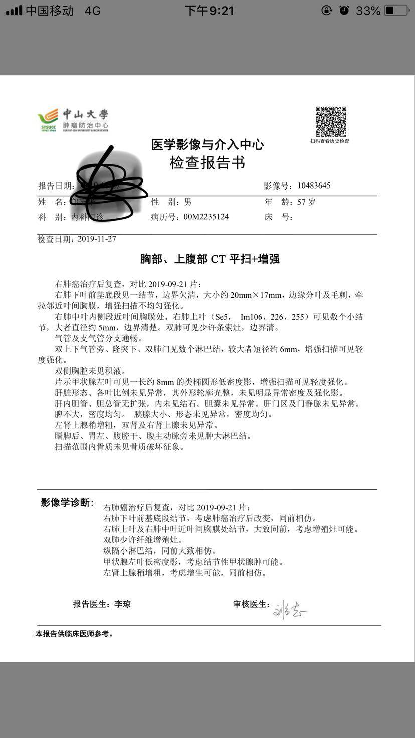 临近复查,获悉爸爸偷偷抽烟,还咳嗽不断。害怕不是感冒,而是耐药。所幸,上天眷顾,祖宗保佑🙏……祈求再慢一点再慢一点耐药。另,cea只降了0.0几,胸片大小都没有缩小,同前基本一致,是大家所说的进入平台期了吗?