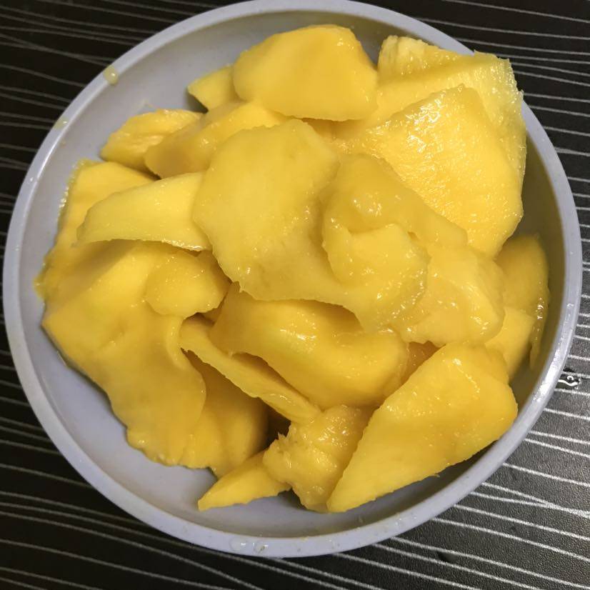 他特殷勤的,买了我爱吃的大青芒,去皮,切成块 。