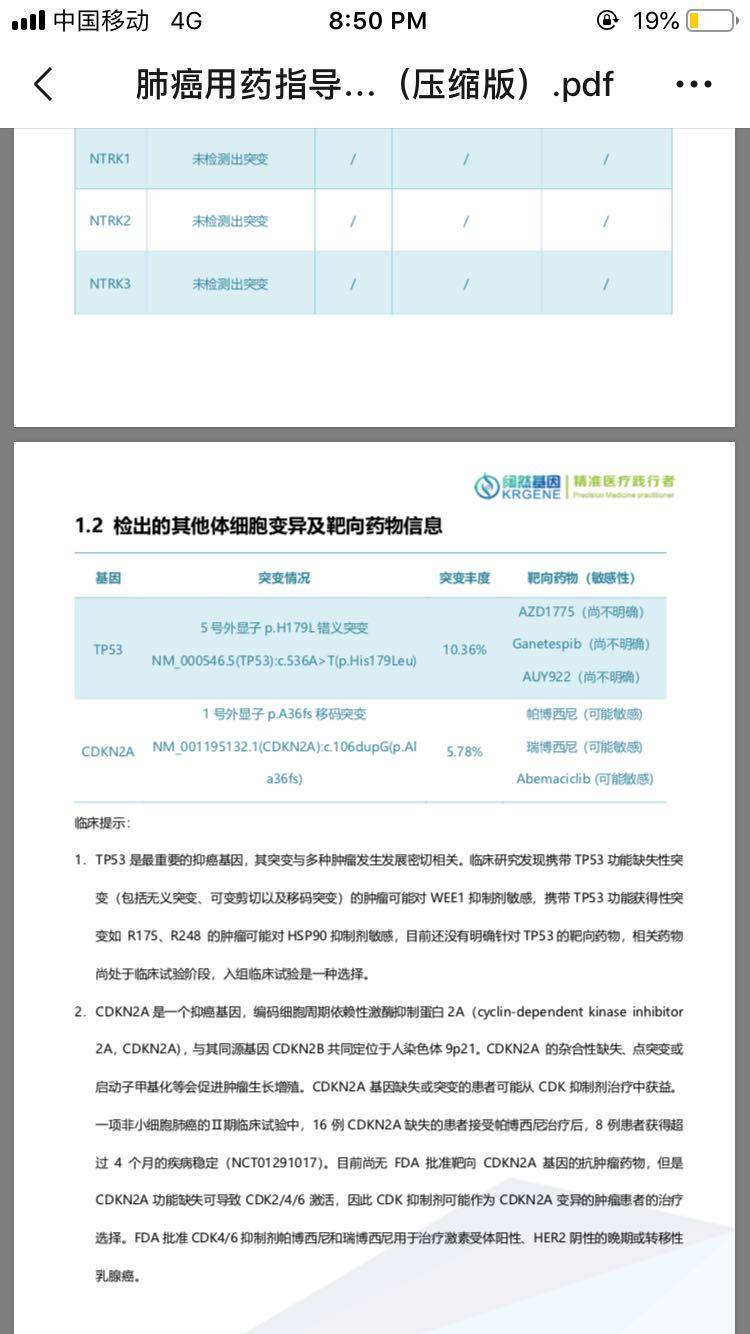 爸爸 肺鳞癌的基因检测结果给大家看一下
