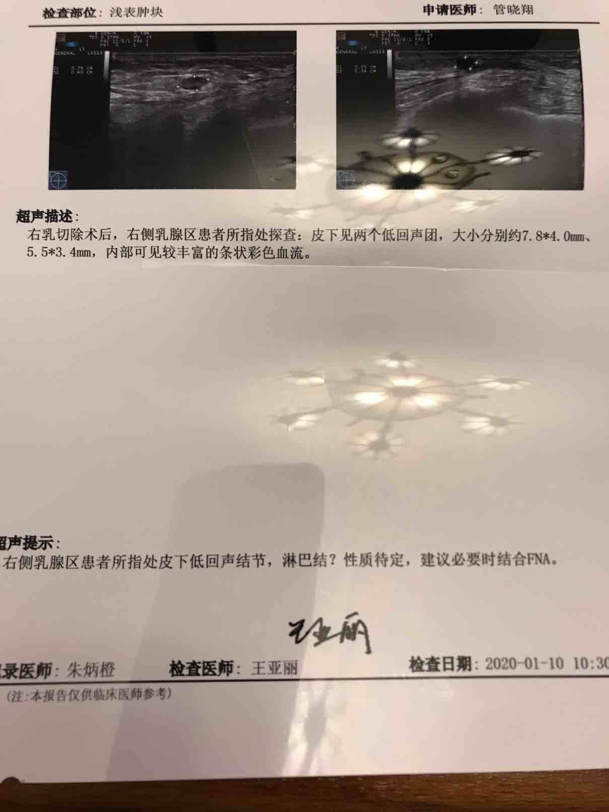 我18.9月手术,赫塞汀还有两次就结束了,我这次又打双靶向,昨天自己摸到患侧腋下有一个皮下结节,今天做B超显示两个结节,一个5毫米,一个7.8毫米,有血流信号,可能要接受穿刺,有姐妹懂这个吗?