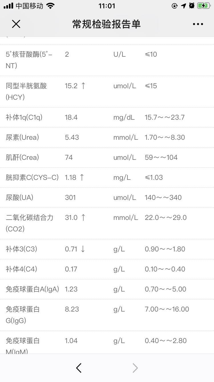 复查了血常规完全正常、尿常规完全正常、免疫中的C3低一点、肝功正常,肾功能的部分指标不正常,医生就给我把吗替减到一天三顿,一顿一颗了,开心,因为这个药真的贵呢…激素每天1.5颗,痘痘还是多的要命,希望自己早日停药康复,加油!
