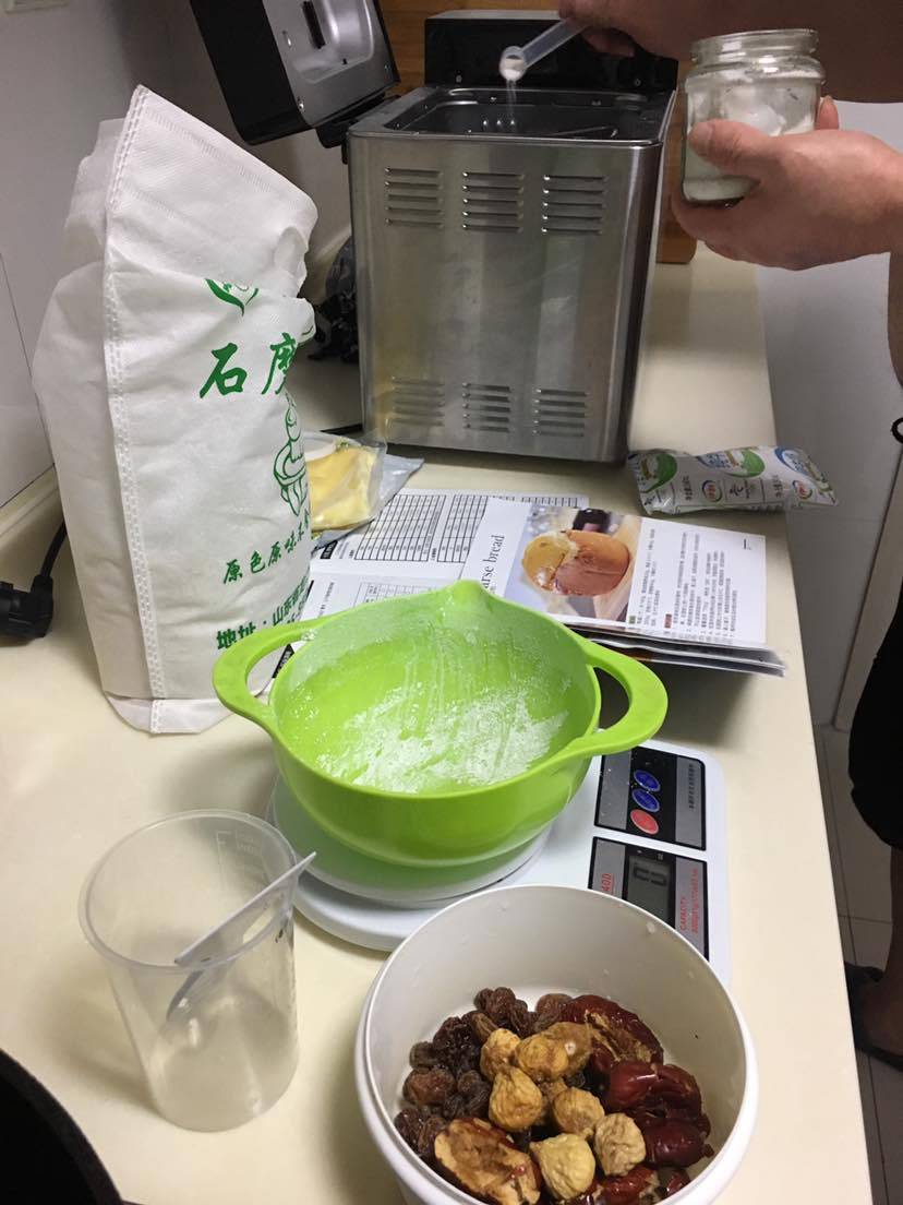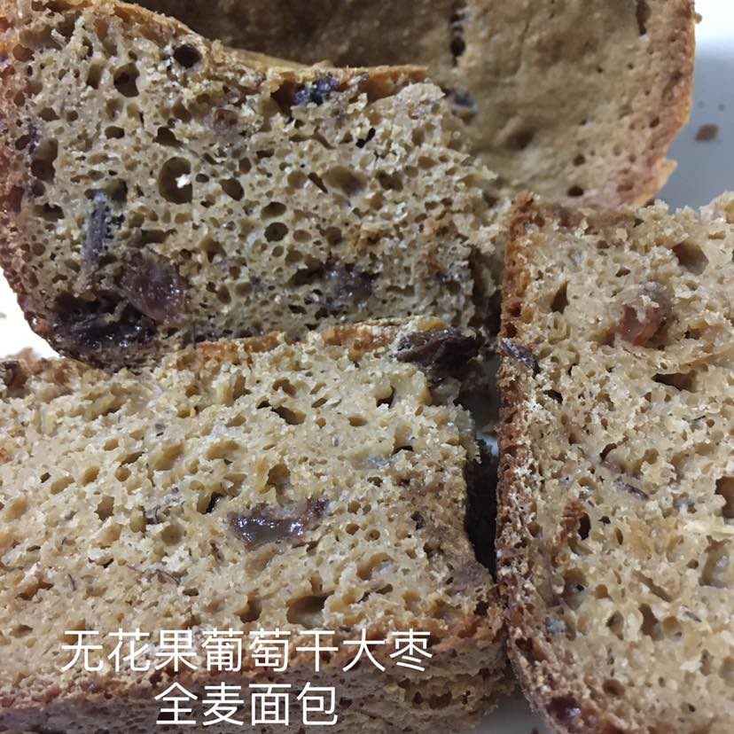 全麦面粉300克、牛奶240克、酵母5克、黄油或者植物油适量。葡萄干、无花果、大枣适量。把所有的食材放在面包机里简单快捷