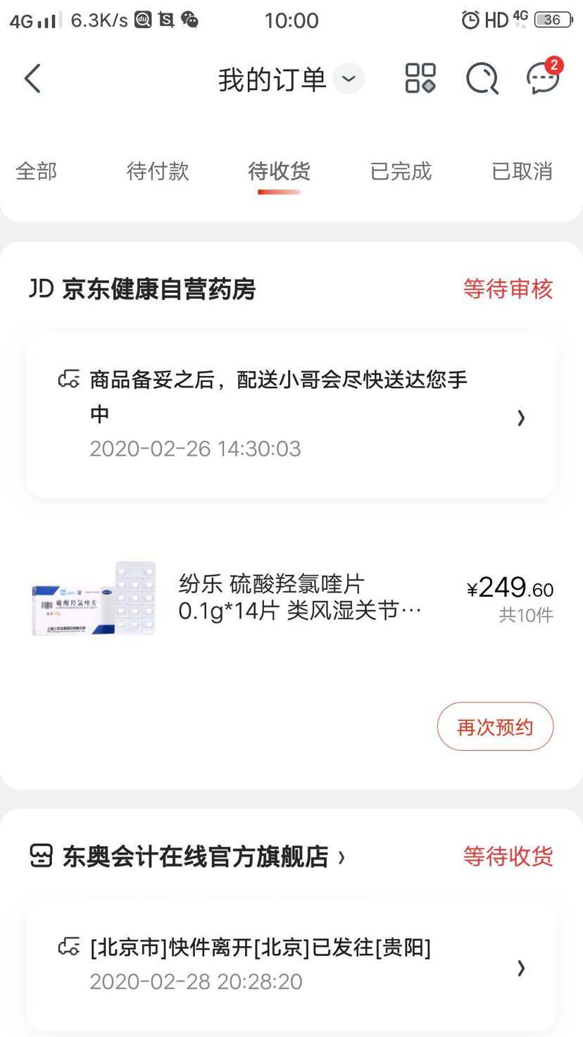 京东下单是预约购药,需要京东药房那边儿把药买到之后,才会给你发货。