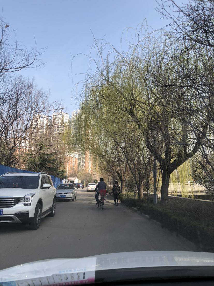 早晨看见路边的柳树已经绿了