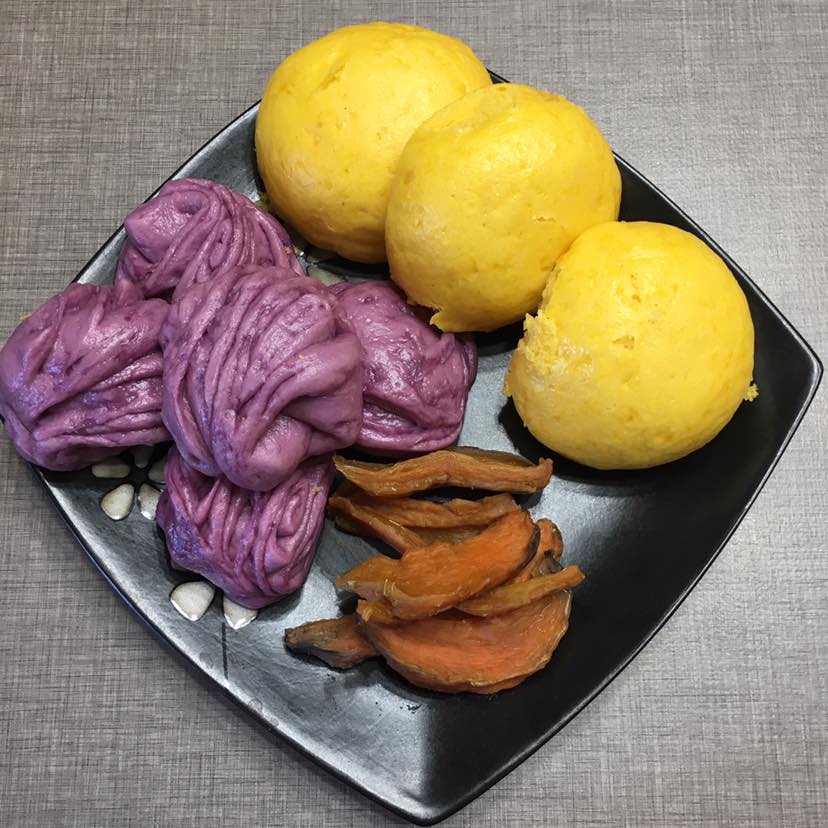 我喜欢黑色篮色灰色和紫色,在我喜欢的几种颜色里,紫色是除了黑色以外我最喜欢的颜色。所以有时候吃紫薯或者红心火龙果和紫甘蓝,大都是喜欢它的颜色😄今天下午做了紫薯花卷,颜值爆棚啦✌️晚餐主食是南瓜馒头,加紫薯花卷还有地瓜干,地瓜干一定要蒸熟才好吃😋