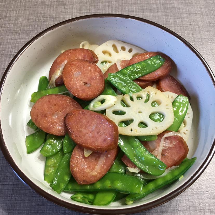 哈尔滨红肠炒荷兰豆藕片