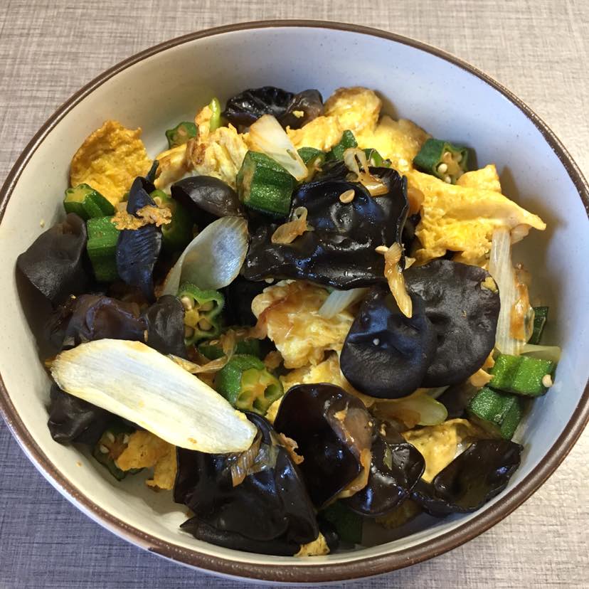 秋葵葱白炒木耳乌鸡蛋