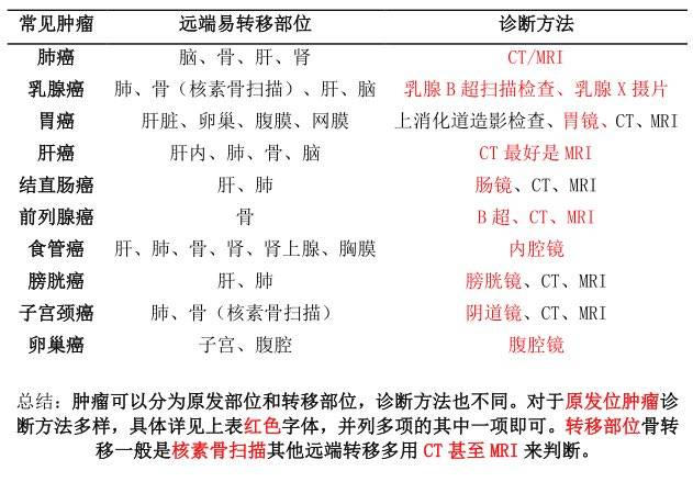 常见肿瘤易转部位以及诊断方法