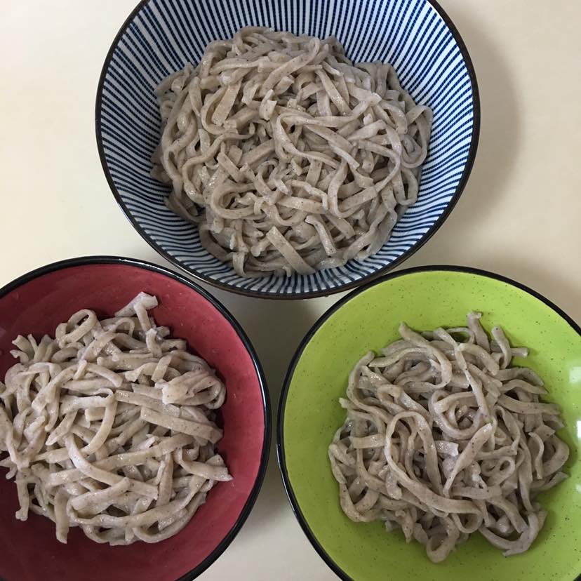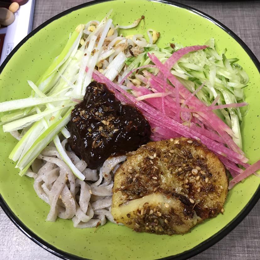 两种酱料,北京炸酱和东北炸酱。还有配菜