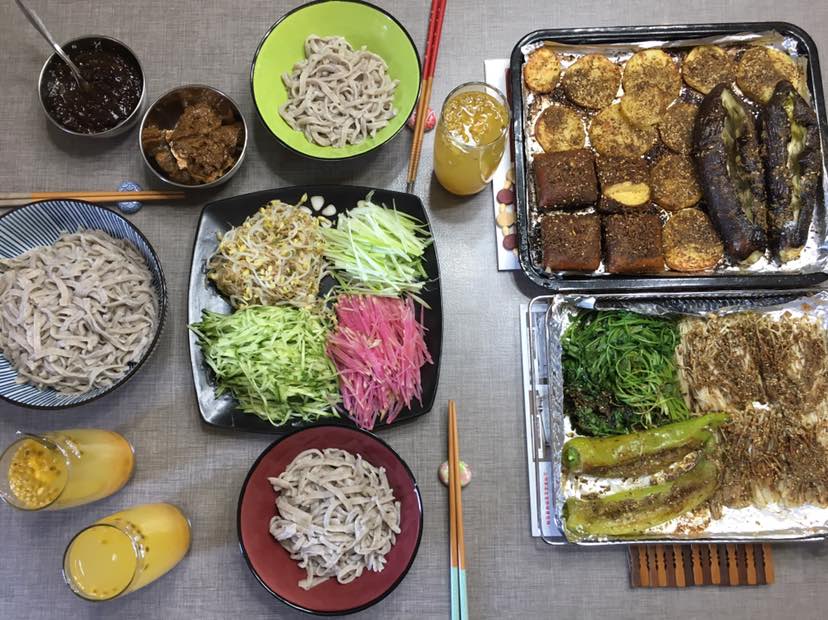 烧烤小菜:茄子,土豆片,豆干,香菜,尖椒和金针菇