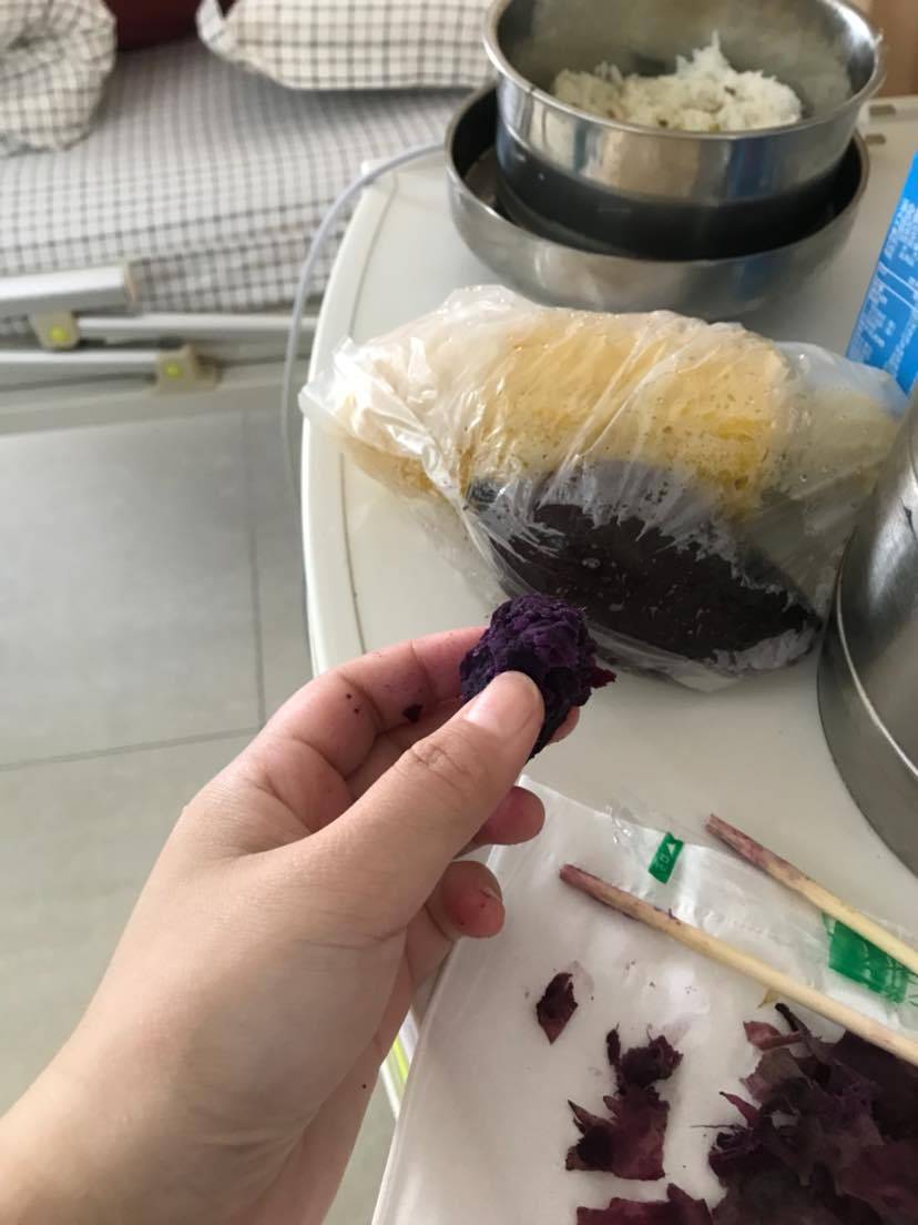 午餐吃紫薯玉米,米饭就算了,我只吃菜的