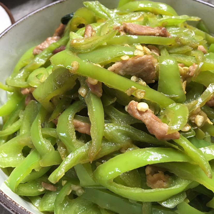 尖椒炒肉是我家的国菜😁儿子的最爱。因为遗传我的基因多一些,我就喜欢这道菜,喜欢辣辣的感觉,病后我就很少吃了。尖椒不辣做出来也不好吃😋这个做法和炒葱蒜一样,把肉腌制一会。出锅放点蚝油更好,下饭神菜✌️