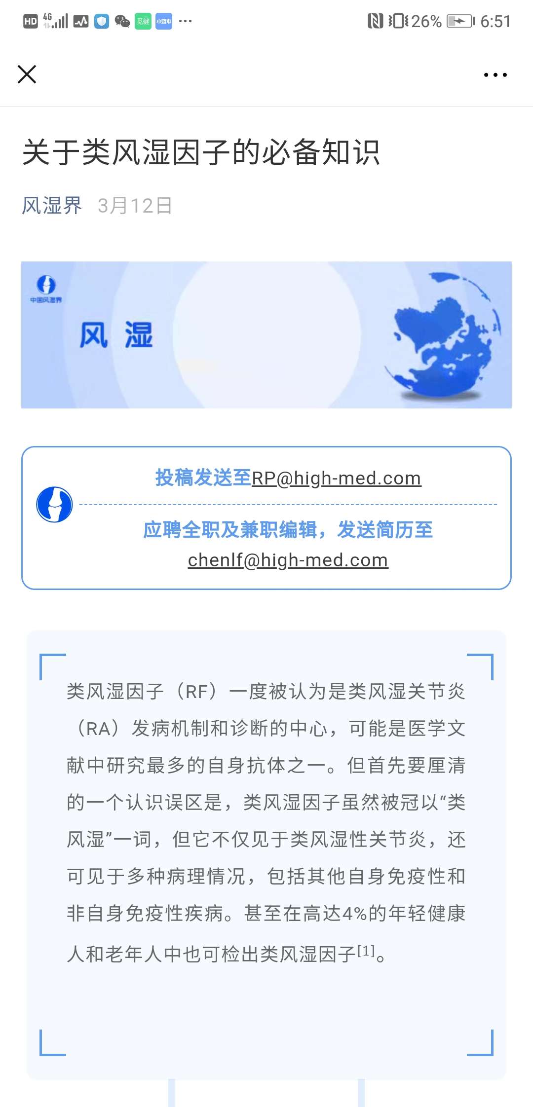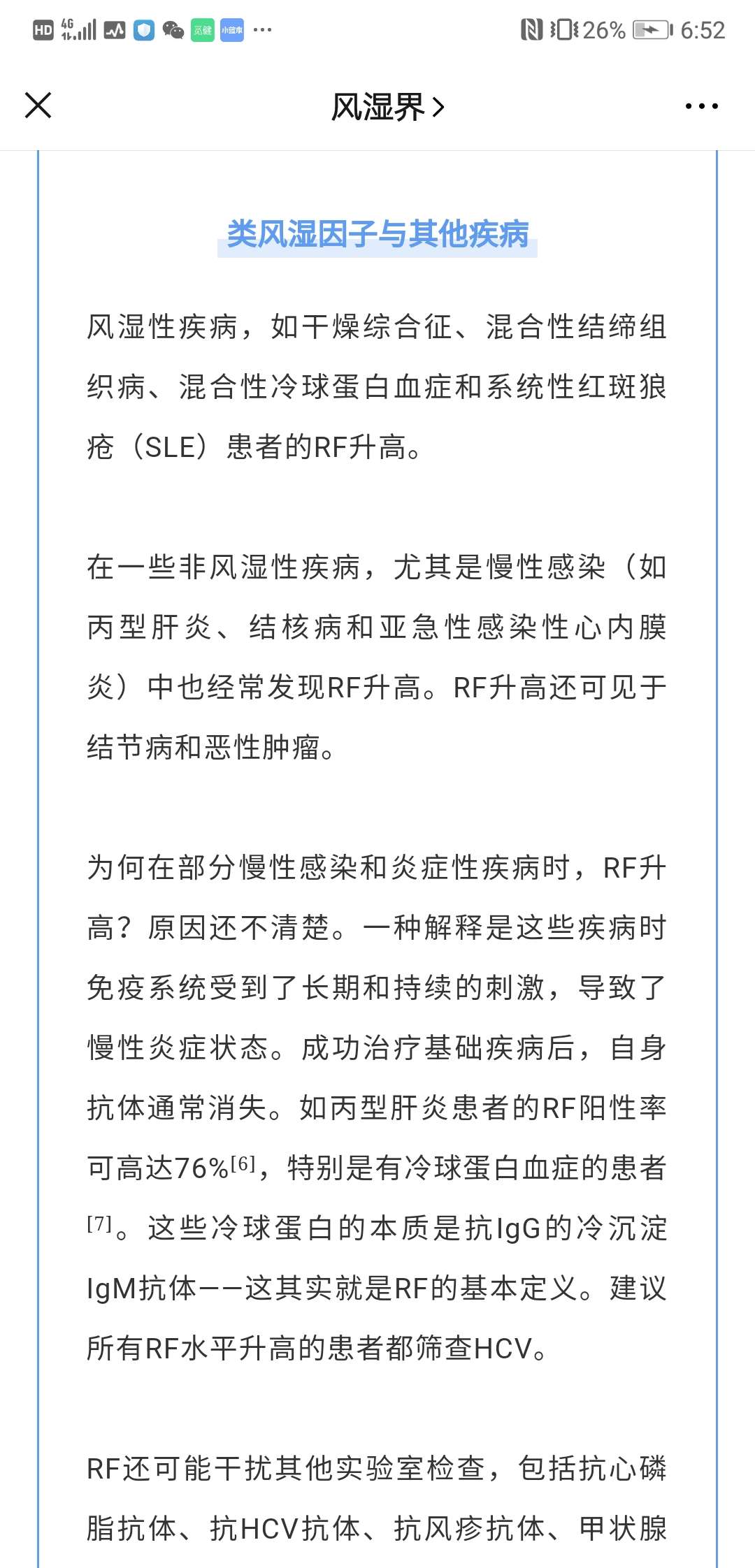 结果在自身免疫疾病筛查时发现类风湿因子很高