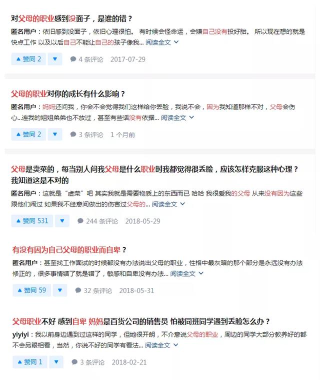知乎上,因父母不体面的职业而受困扰的人数不胜数。