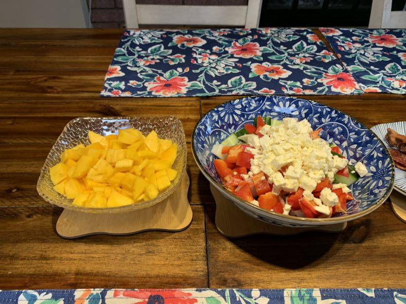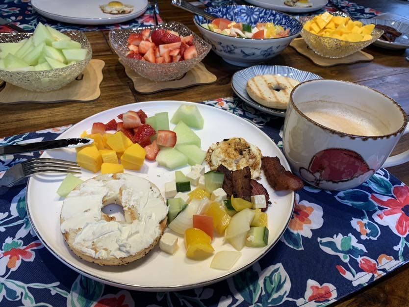 就像我这么懒的女人也开始做早餐了,我调侃女儿说我们提供早餐服务,他们搬走的时候结账一并算钱。她说他们吃的很少的,不应该花多少钱。女婿说他可以喝牛奶加麦片也用不了多少钱。看来想收两个小心眼的钱也是很难的😂。 说是做早餐,其实也就是切点水果蔬菜,拌点沙拉,再来点发面煎饼🥞。