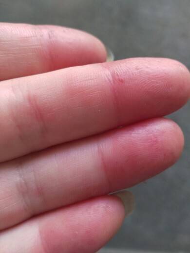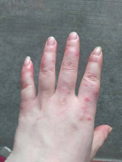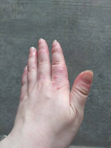我不怎么痒,但是一碰就疼,手要抓东西就想带手套