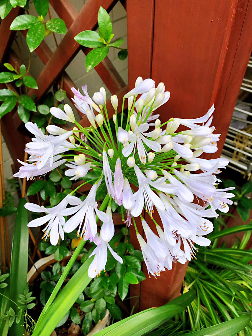 冰清玉洁的百子莲无惧风雨,开放快一个月了仍然坚挺。