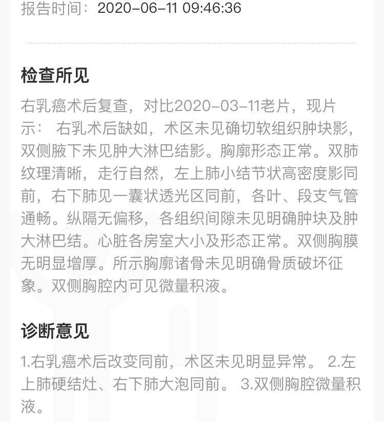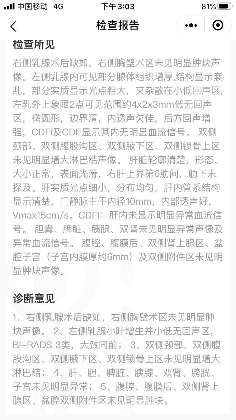 赶考归来,给大家报告一个好消息,B超结果如前,ct结果如前,主任医生说:没有问题,6个月后再复查。
