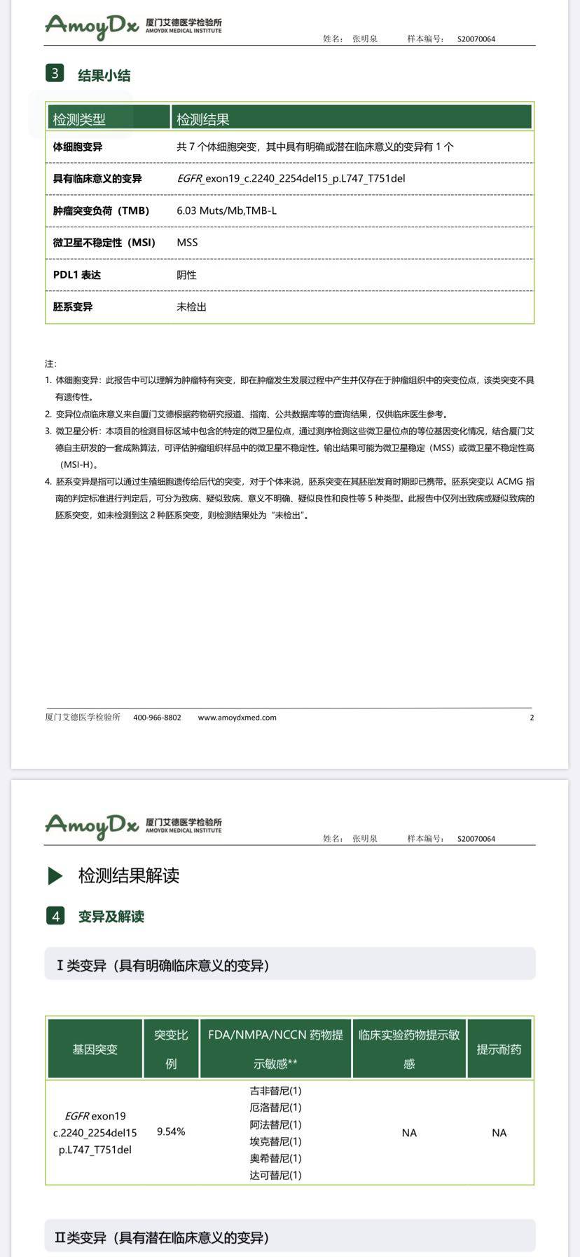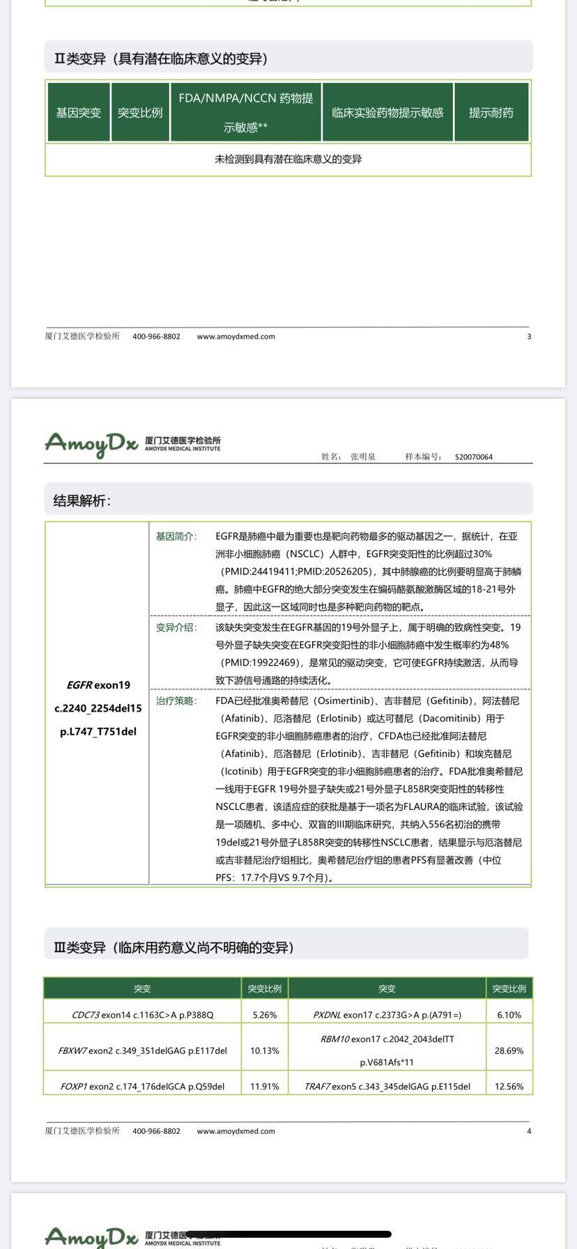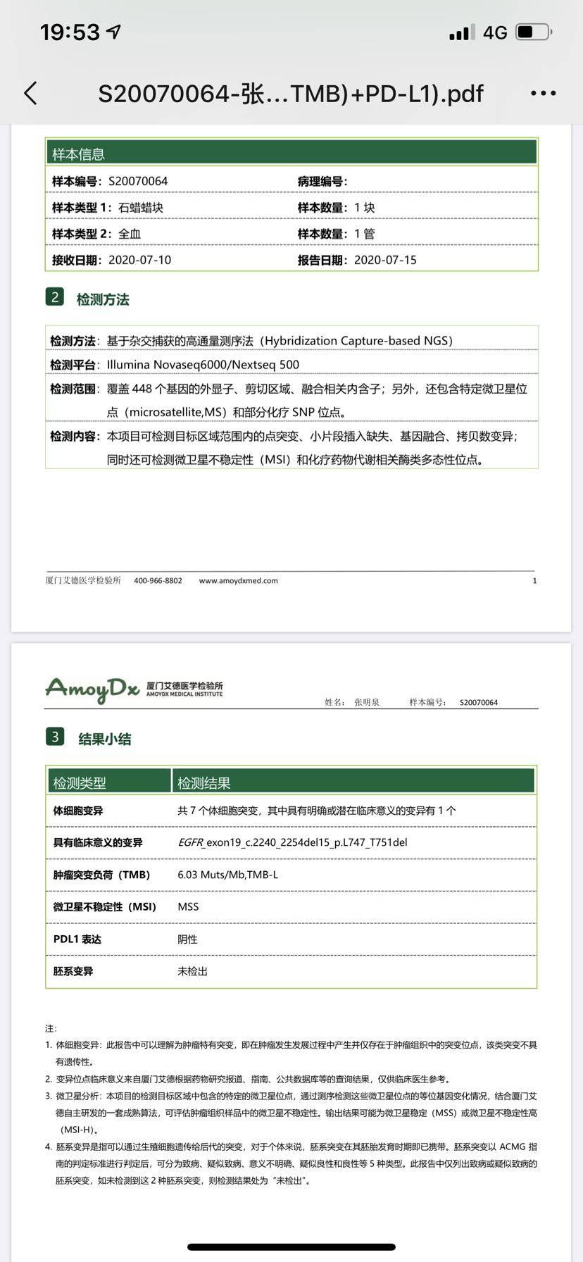 确定有19突变,可以考虑吃靶向药