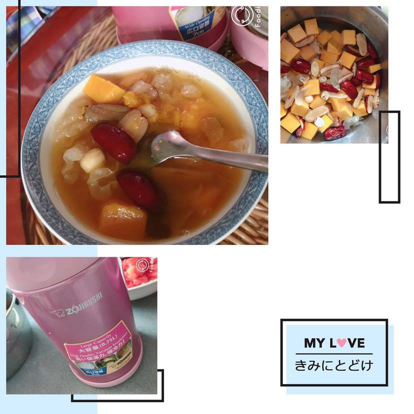 中午回家做午饭同时,把红枣、莲子、百合、南瓜放小锅里煮上,煮到七八成熟全部倒入焖烧杯,带到病房,晚饭的营养汤OK!