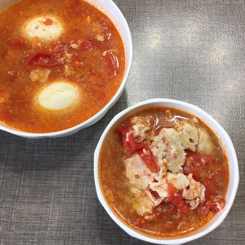 西红柿鸡蛋汤,两种不一样的鸡蛋,我的是笨蛋😄哥们的是普通蛋