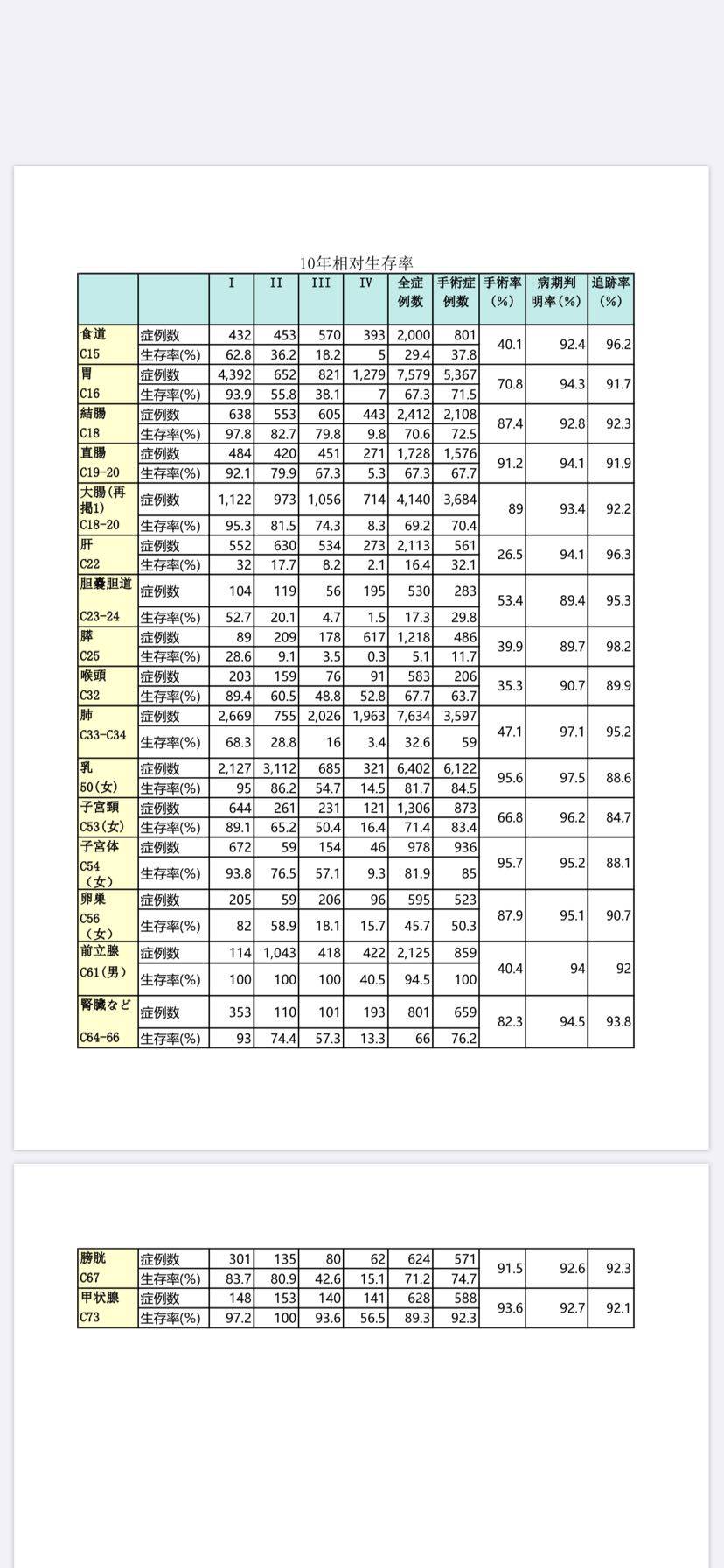 日本5年和10年生存率,