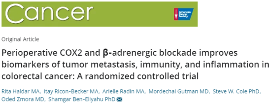该研究在乳腺癌患者围手术期使用了两种药物,分别为β-肾上腺素受体拮抗剂(普萘洛尔)和COX2抑制剂(依托度酸),来控制患者术后大量分泌前列腺素和儿茶酚胺,预防肿瘤复发或转移。