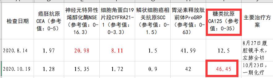 不用担心,术后多有胸腔积液,ca125和胸水积液密切相关。我术后也遇到了同样的问题。积液慢慢吸收完了,这个值就降下去了