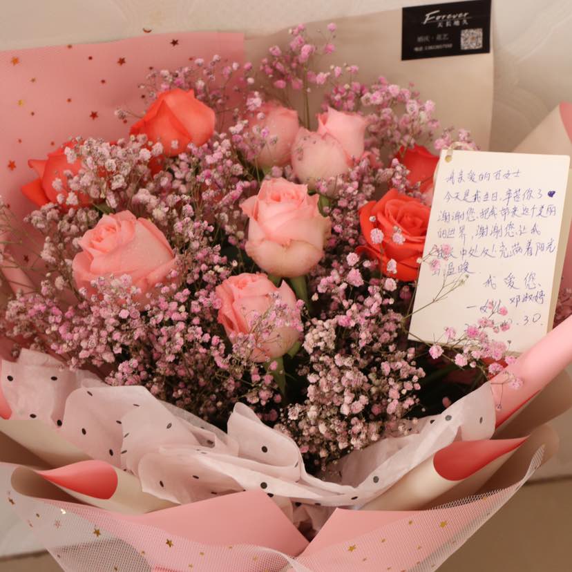 今年毕业了,出来工作了啦有点小钱钱了就送束鲜花和发给小红包给妈妈