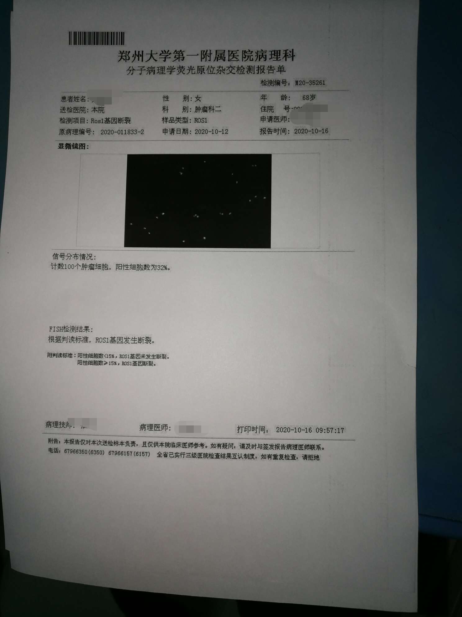 求大神帮忙看看,刚查出ros1基因断裂,过程复杂