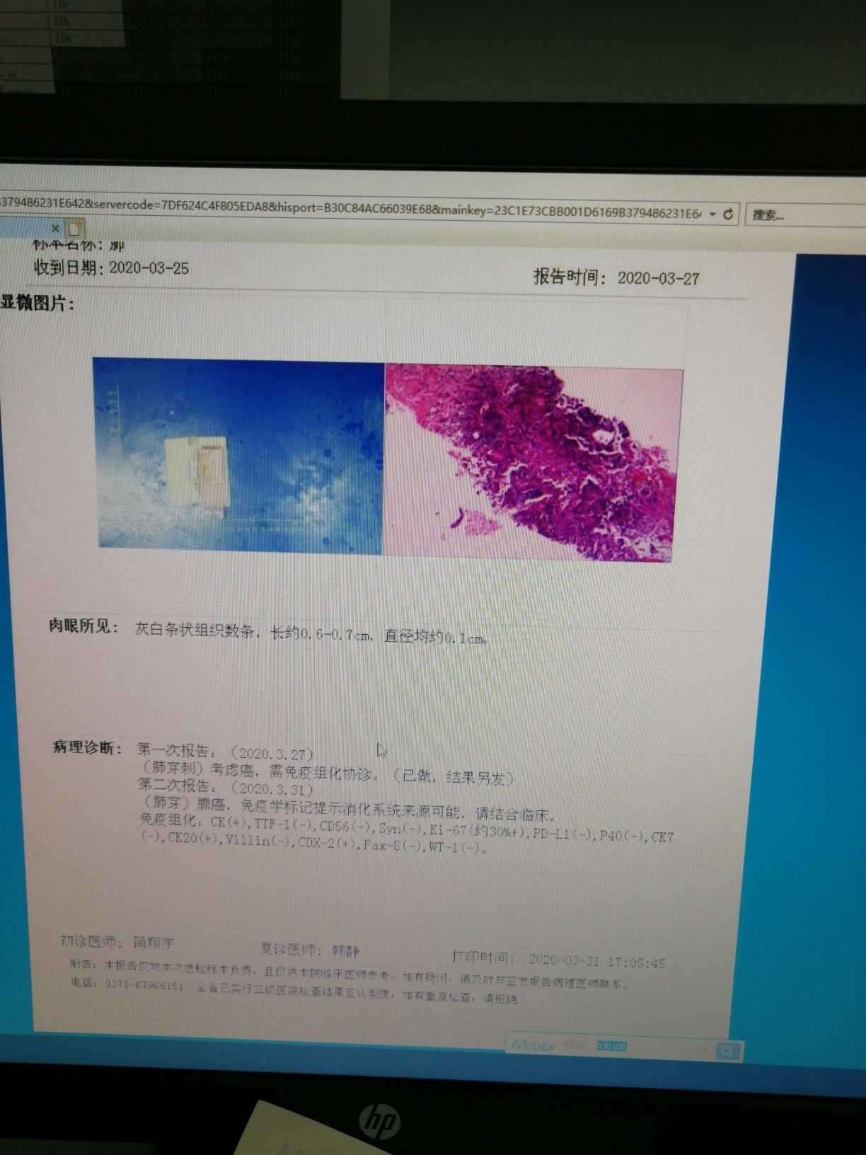 3、期间治疗口腔问题发现牙龈转移,再次加做免疫组化PDL1<1%(原切片),后K一只 安罗10mg一个周期,又因为副作用(acth等)暂停用药,安罗继续使用,原主治说让回家保守治疗,家人商量后转科到肿瘤科,之前在呼吸内科