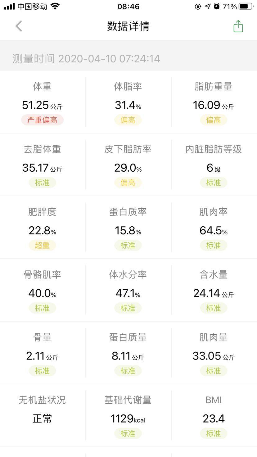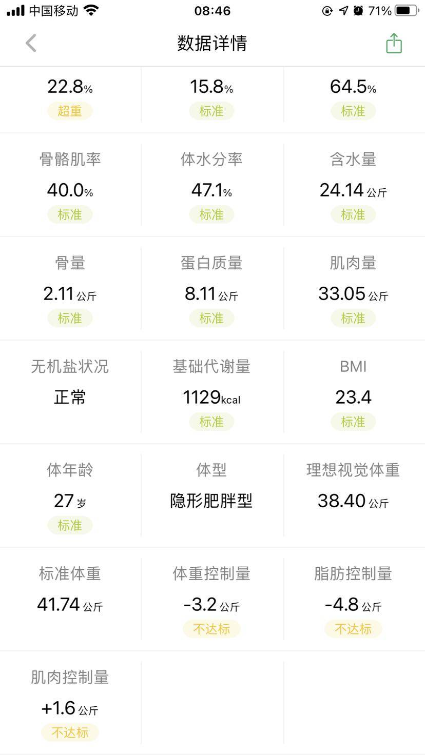 不看不觉得,一看才发现这么大区别。现在才达到标准,从102定目标,95。95再定90,90再到87。。。然后。。。这几个月来我也不知道经历了什么。然而还是很多不达标。。😂😂继续加油咯