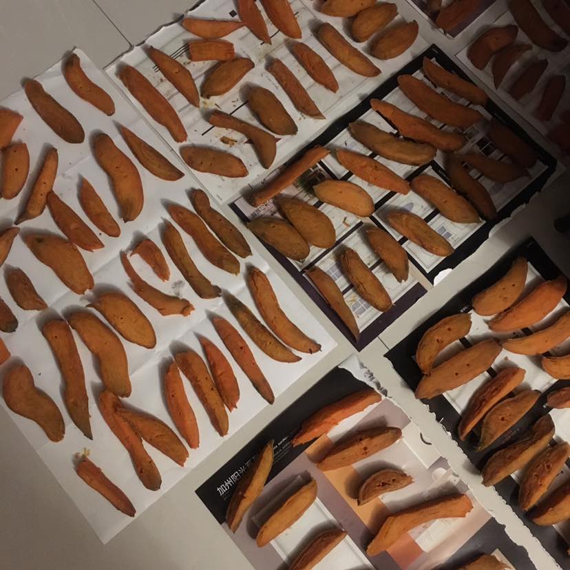 我也做了地瓜干,我煮熟后是用烤箱先烤一下,再拿出去晒,我们这里没有太阳,可能也晒不成功,还要继续烤。