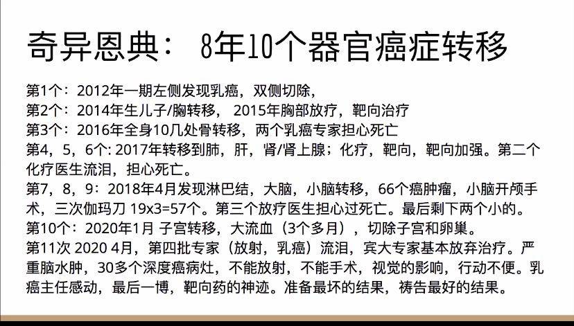 谢谢分享,面对现实才能真正直面人生,才能更珍惜目前还算安稳的日子,正好这几天有些放逸,熬夜看手机,吃甜食,发脾气,有点得意忘形了,感谢敲警钟,提醒我们这病绝对不能大意了,这些复发转移与病魔抗争至生命最后一刻的战士们,用她们的生命,铺成指引我们的路,告诉我们哪些该注意,使走在这条路上的人能走得更长久些,或者少受些这病的毒刺。警钟需要长鸣,不能因为忌讳而拆掉警钟不让它鸣,否则错误乐观放松,敌人打进来就是要是来索命了