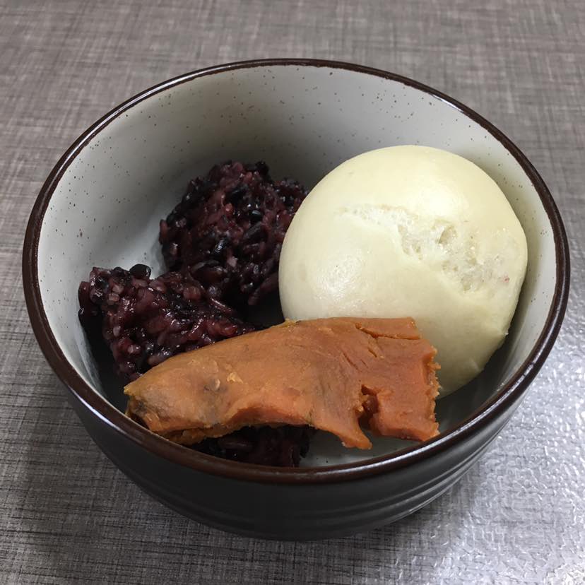 早中餐:地瓜干🍠三仁馅包和黑米饭