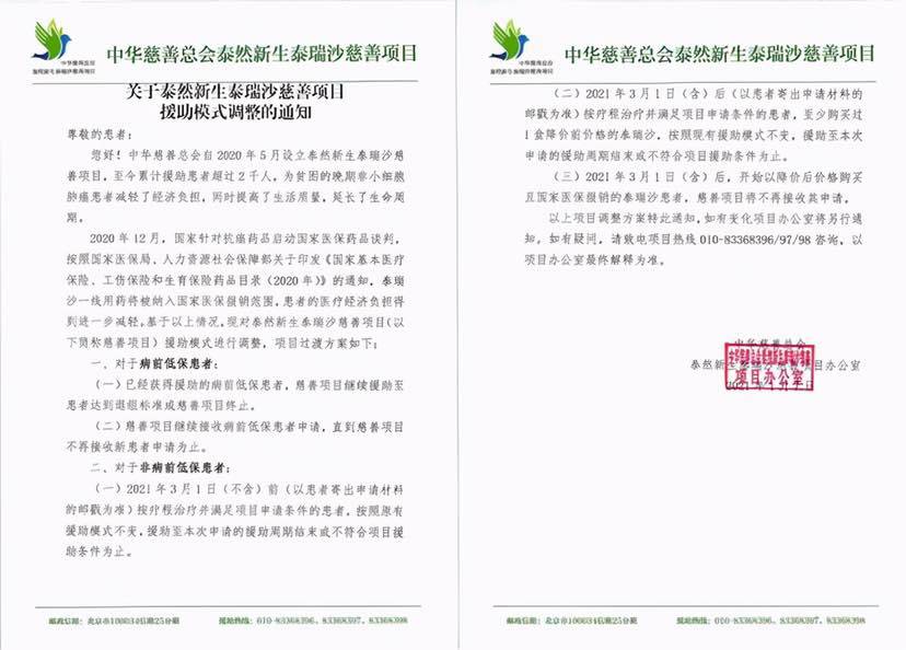 赠送方案:低保患者免费用药;低收入患者满足条件后用药免费